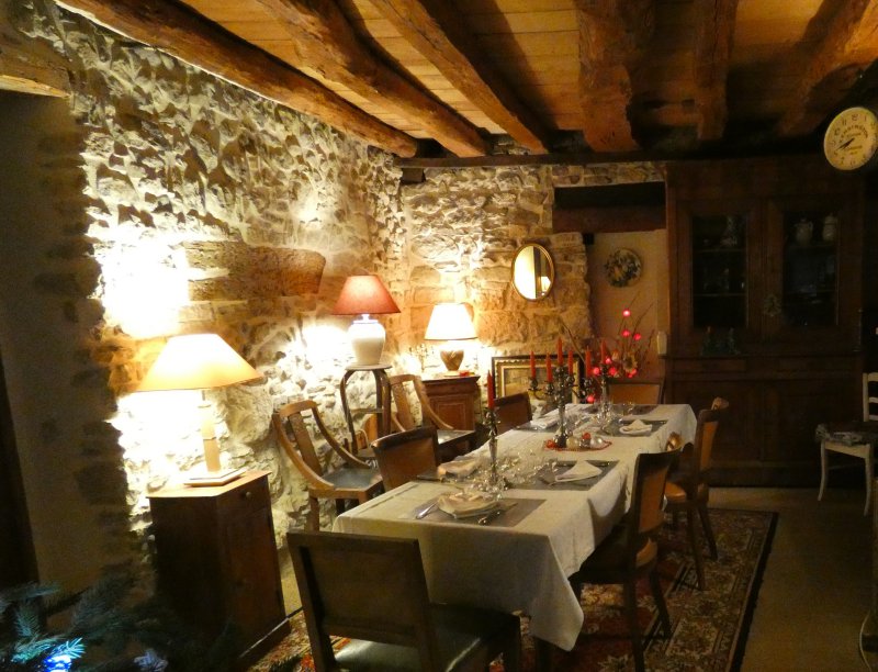 L'ambiance y est chaleureuse, dans ce très joli cadre ;vieilles pierres et poutres datant de l'époque de la construction de la partie la plus ancienne de l'établissement (17 eme) , le décor est romantique et coloré et l'intimité est de mise, les objets de brocante sont partout